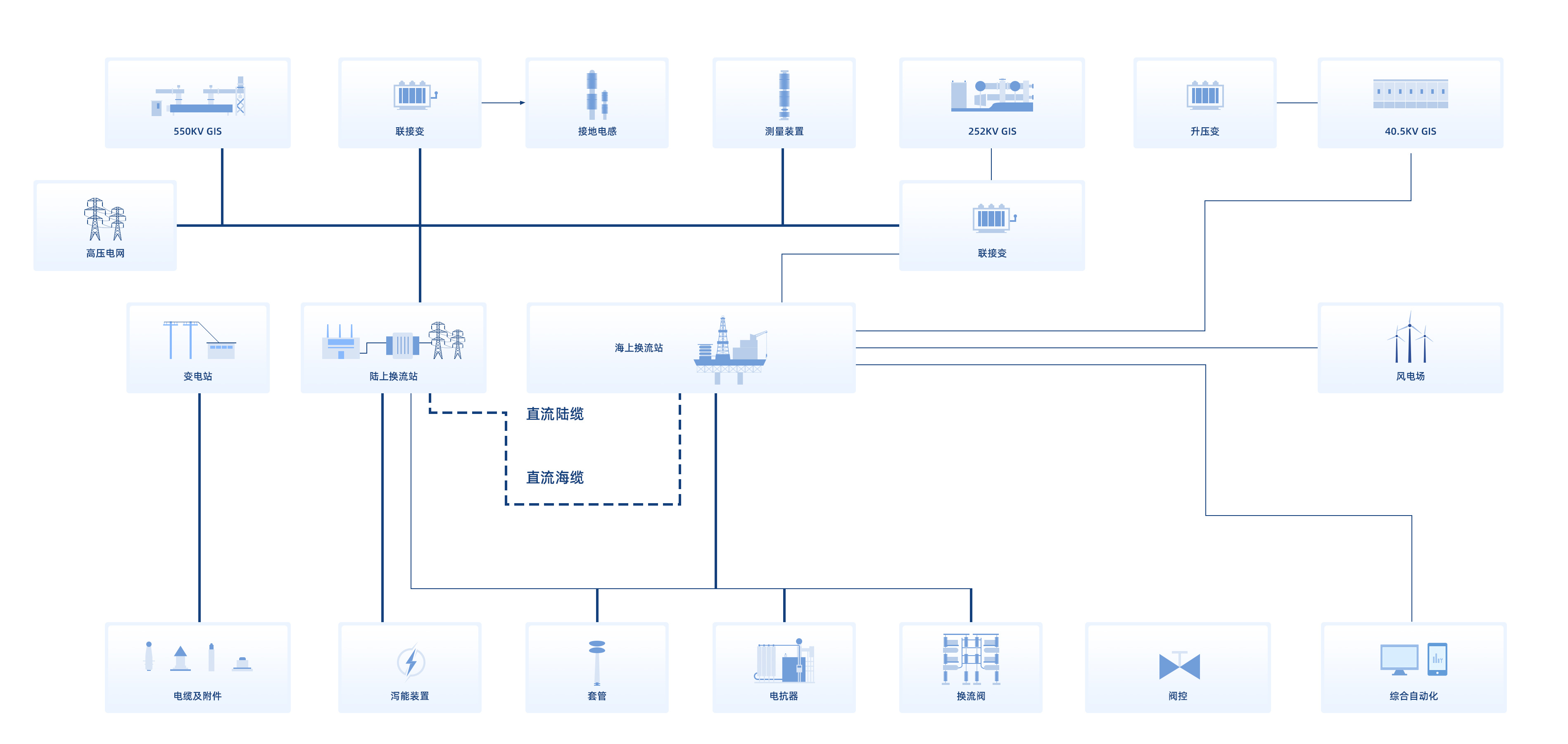 集成交直流全系列变压器、GIS、开关柜等设备,建立从核心部件到系统集成的供应链,保障项目高效交付与全生命周期协同发展。