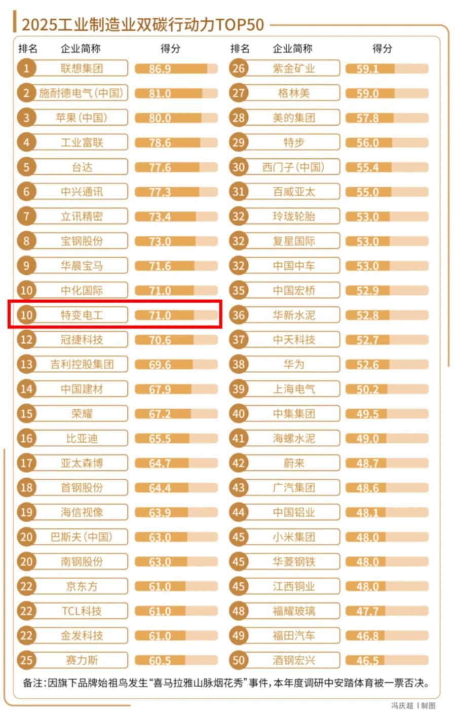 2025年11月,特变电工亦成功入选由《南方周末》发布的“2025工业制造业双碳行动力TOP50”榜单,位列第十。该榜单通过营业规模与行业影响力对企业进行筛选,并覆盖钢铁、有色、建材、汽车、纺织服装、化工、机械制造、电子电器等关键制造领域,具有广泛的行业代表性。此次入选,彰显了特变电工在工业减排与绿色转型路径上的实践成果获得权威媒体的高度认可。