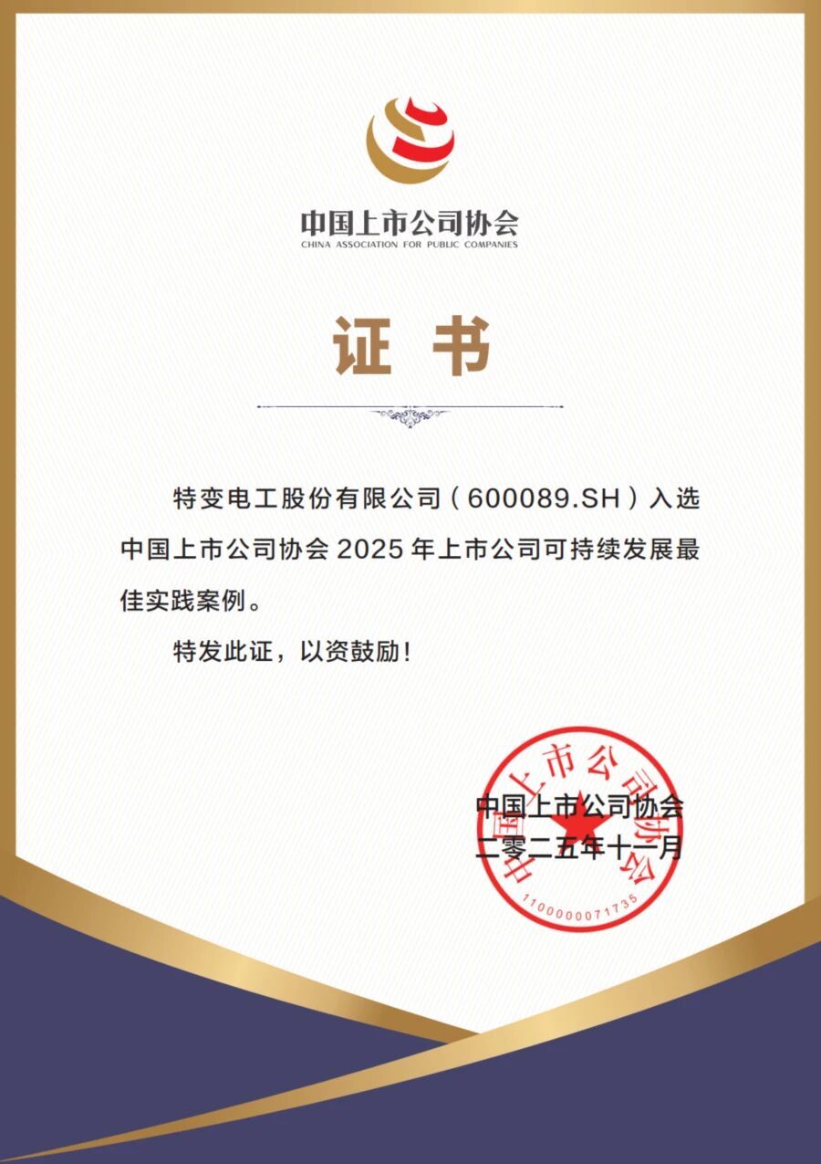 2025年11月,在中国上市公司协会主办的“2025年上市公司可持续发展大会”上,特变电工入选年度可持续发展最佳实践案例。作为受中国证监会指导的全国性自律组织,中上协所评选的案例代表了上市公司在可持续发展领域的标杆水平,也印证了公司在ESG实践方面的系统成效。