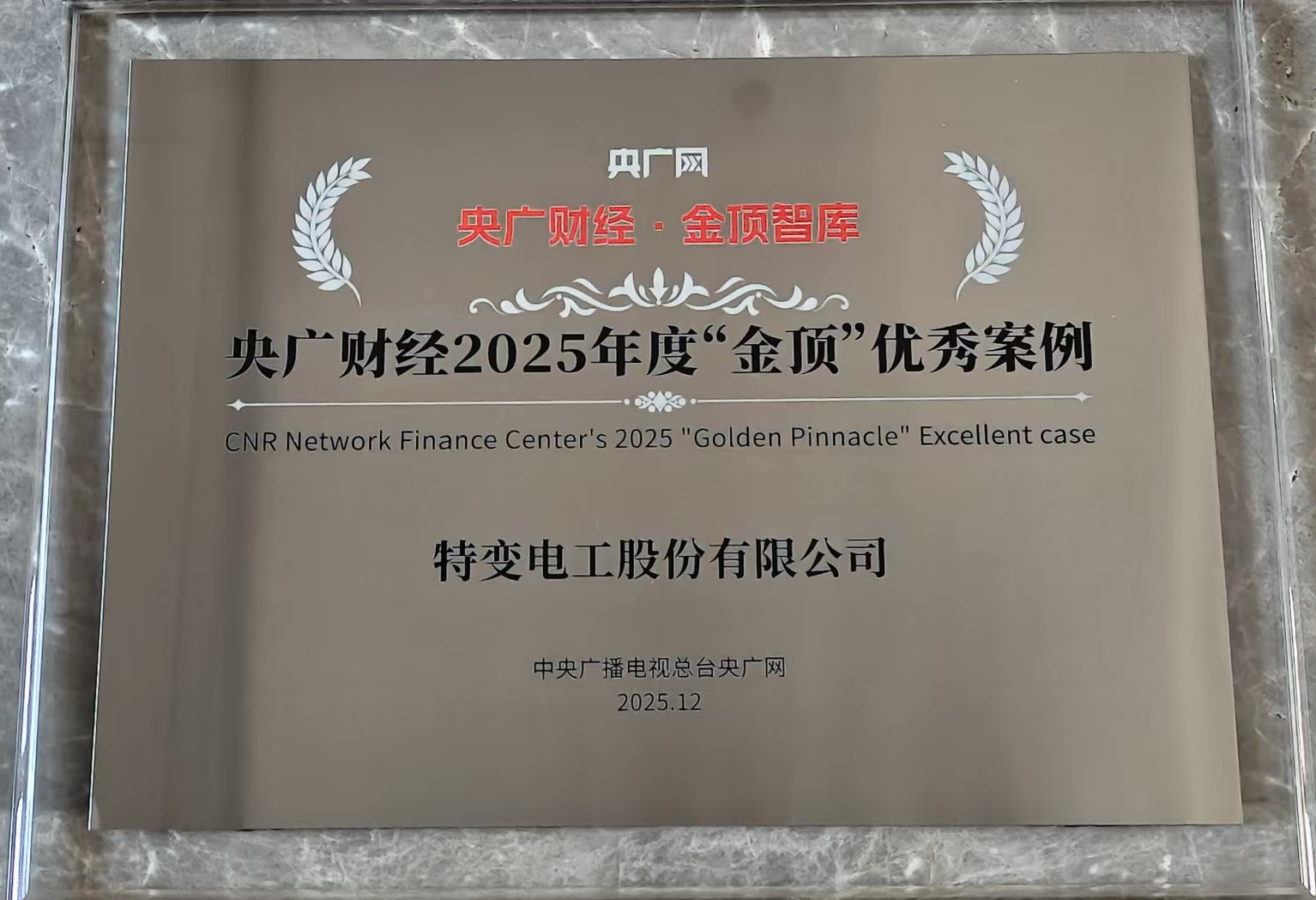 2025年12月,特变电工“制造业绿色转型的ESG标杆案例”成功入选中央广播电视总台央广财经2025年度“金顶”优秀案例,“金顶”优秀案例为央广网今年首次启动,共分为九大类别涵盖企业在新质生产力、数字金融、绿色发展等领域的创新实践和成熟经验。“金顶”优秀案例征集活动依托央广网资源与央广财经金顶智库专业优势,通过企业申报、专家评审及公众口碑调研等多个环节,从数百份申报案例中优中选优,最终确定入选名单。
